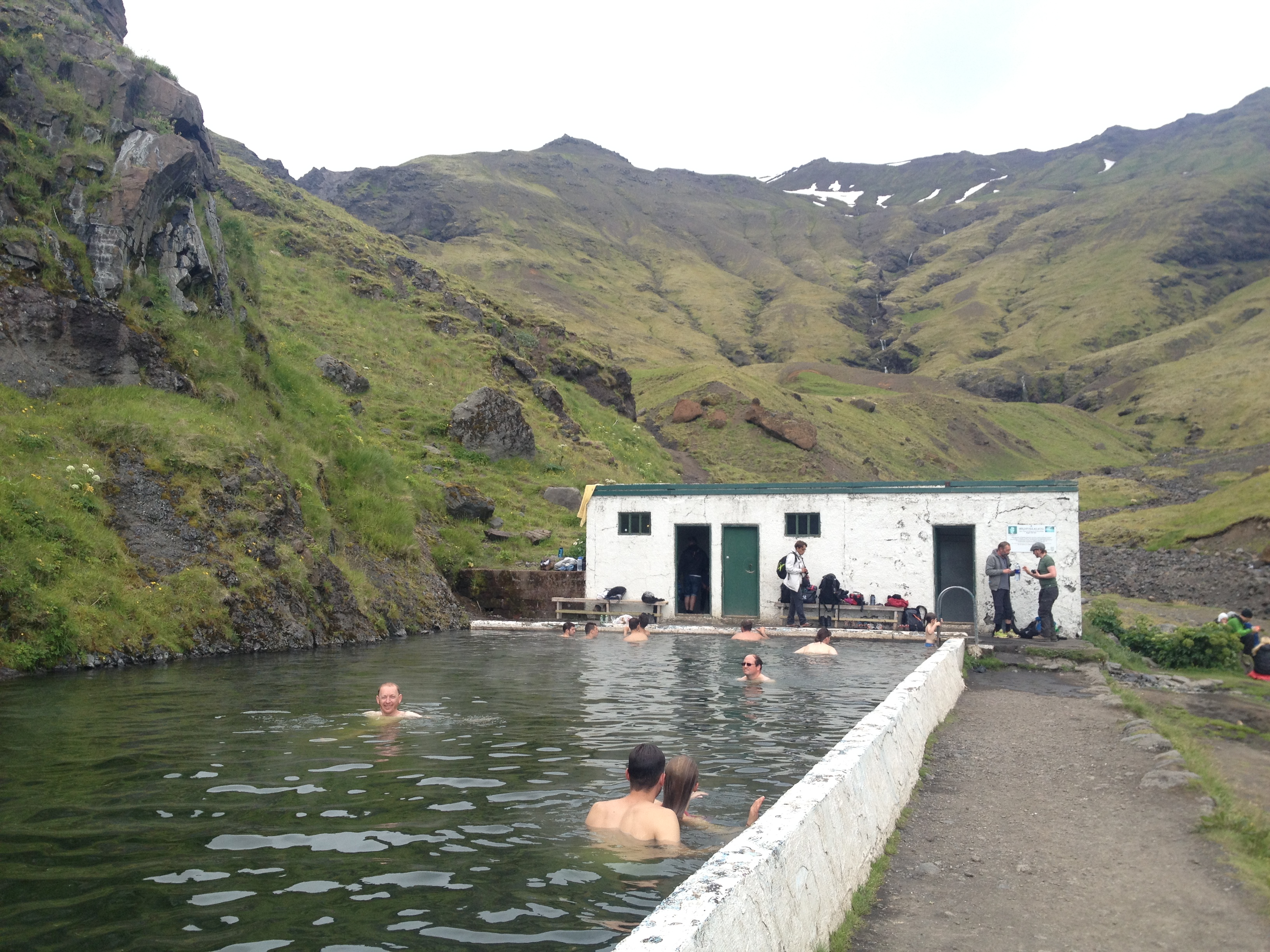 To cap out the day, we took a side trip to Seljavallalaug, a hot thermal pool constructed in 1923. Hot water was running straight out of the mountain into the pool, right next door to a gushing glacial melt stream. A beer and chips after the swim made the day just about perfect.