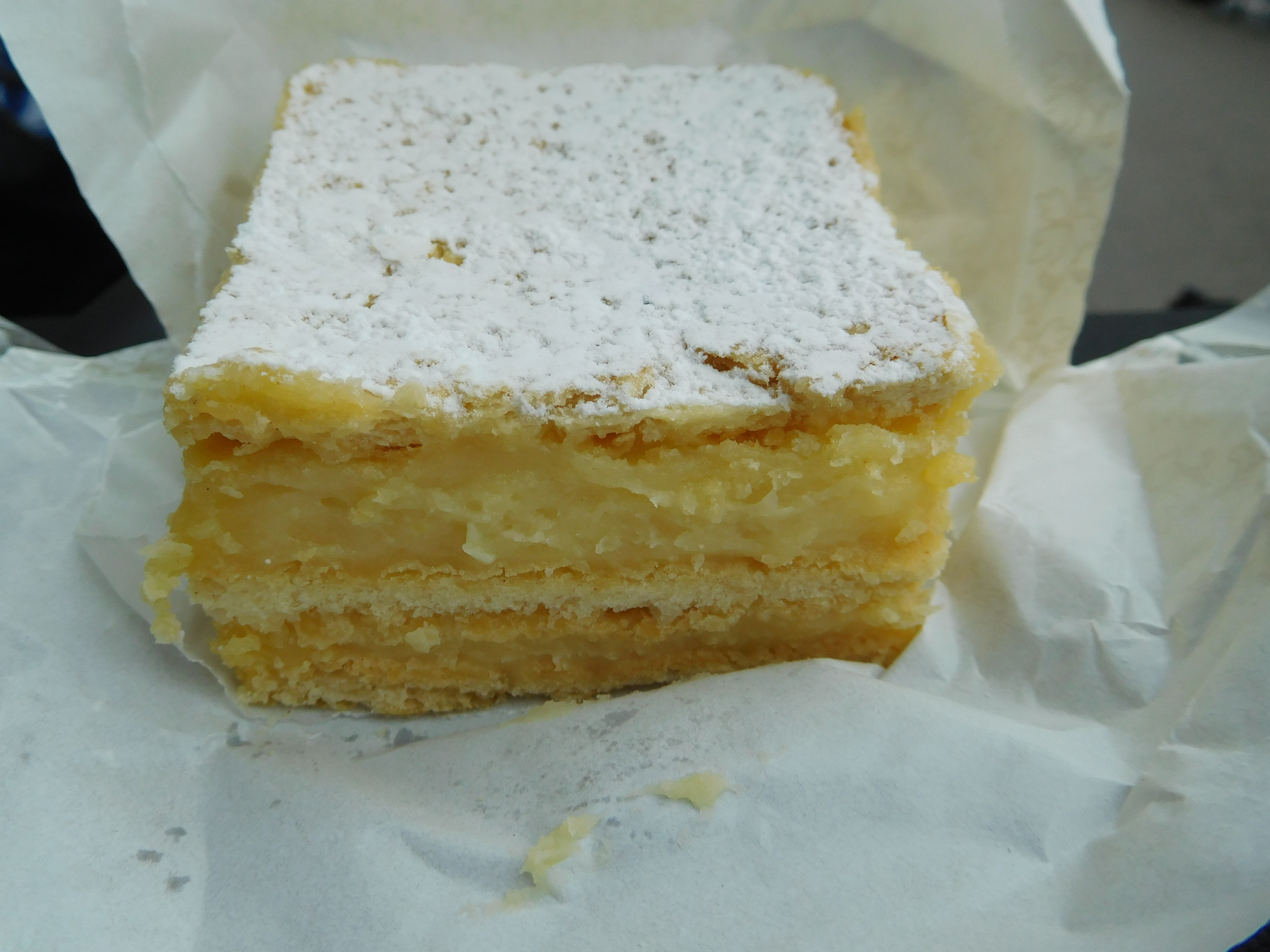 A custard slice like no other. Bought this from a bakery in Trieste, tucked away down an alley, and run by a little old lady (as all good bakeries should be). It smelt divine, and tasted just as good! 4 stars.