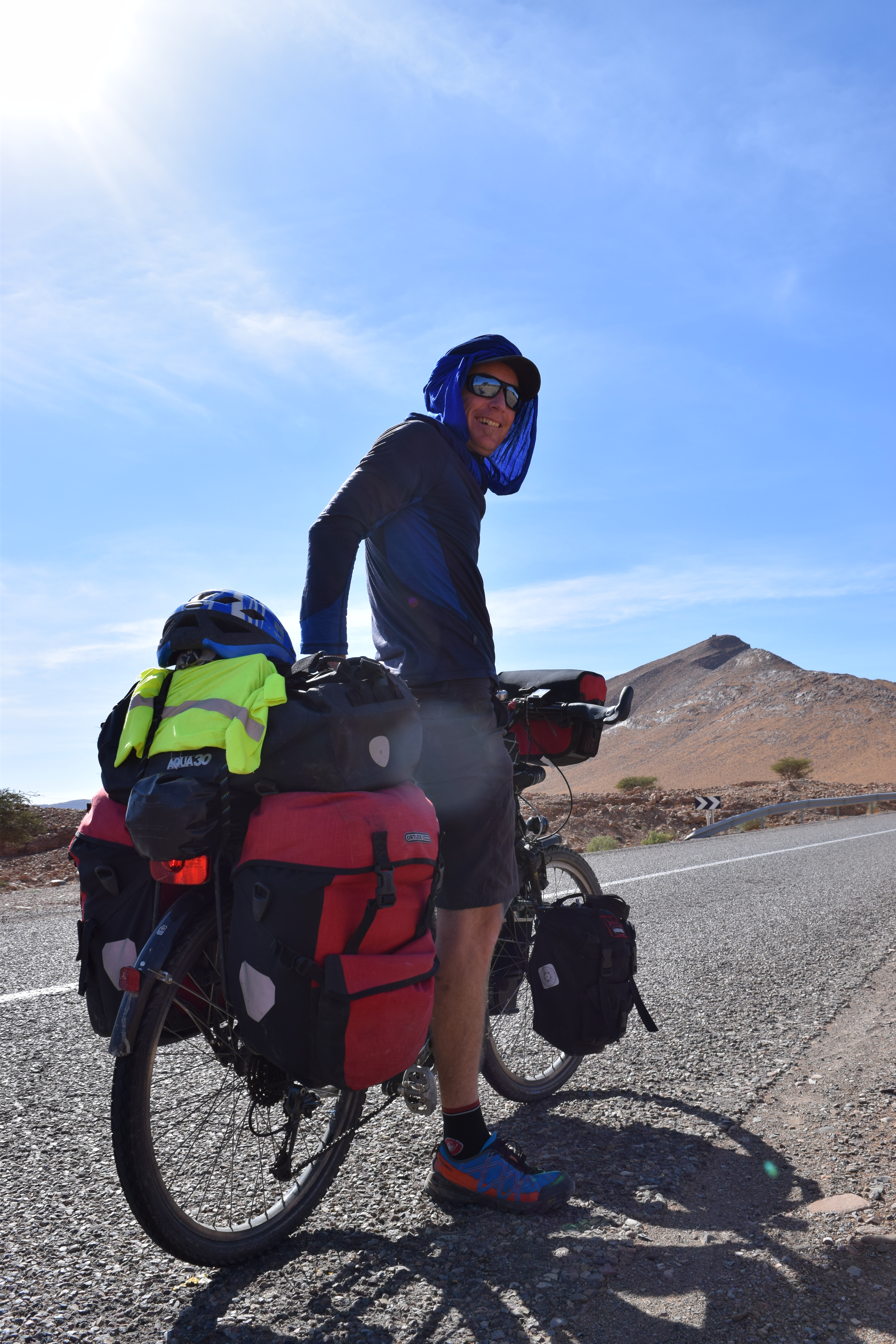 We hit the road again, and were met by yet more stunning but arid landscapes. We came across a small section of the road being worked on, and as we road past one of the workers (I think he was the boss) reached into his pocket and handed me two chocolate bars as I rode past. After the constant hassling in Marrakech and the Draa valley I almost fell off my bike in shock, but recovered enough to stop and run him back a mandarin and say thank you. We then rode on and threw a mandarin to each of the guys working on the road as we passed, getting big grins and waves as we did so.