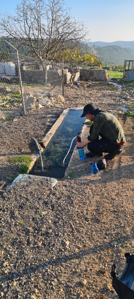 After camping for three days we decided a shower might be in order, so booked a homestay in Remiemeen for the following night. The day’s walking was warm and pleasant, through olive groves with few people around, before coming into more varied cropping land – with pomegranate and lemon groves, and cabbage and passionfruit farms. In one of the small villages a lovely grandma and her grandkids also called us over for tea as we walked, and we spent a pleasant half an hour drinking sweet tea and arabic coffee and kicking a ball round with her kids.
