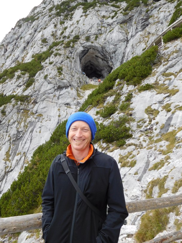 Looking up at the cave